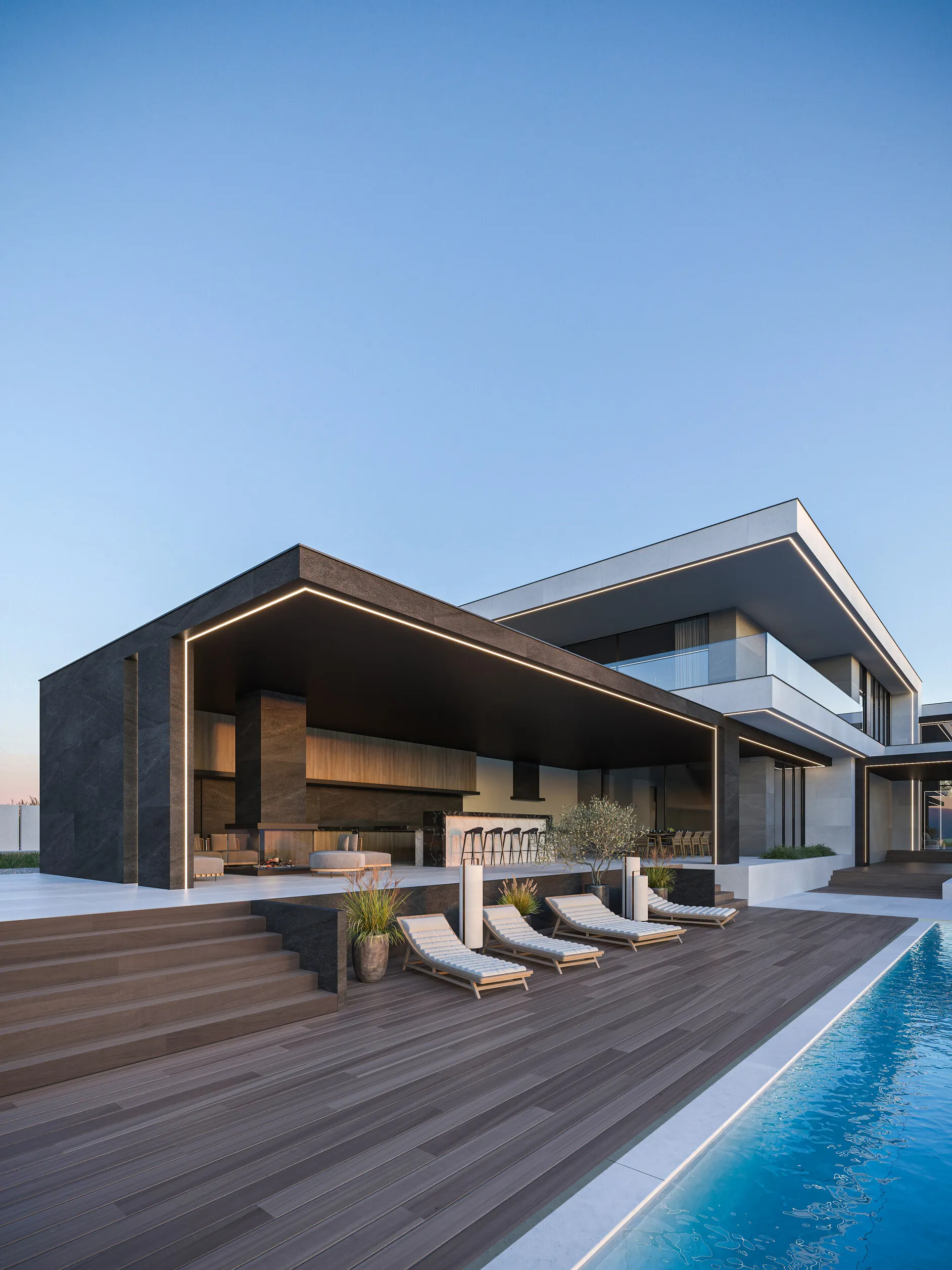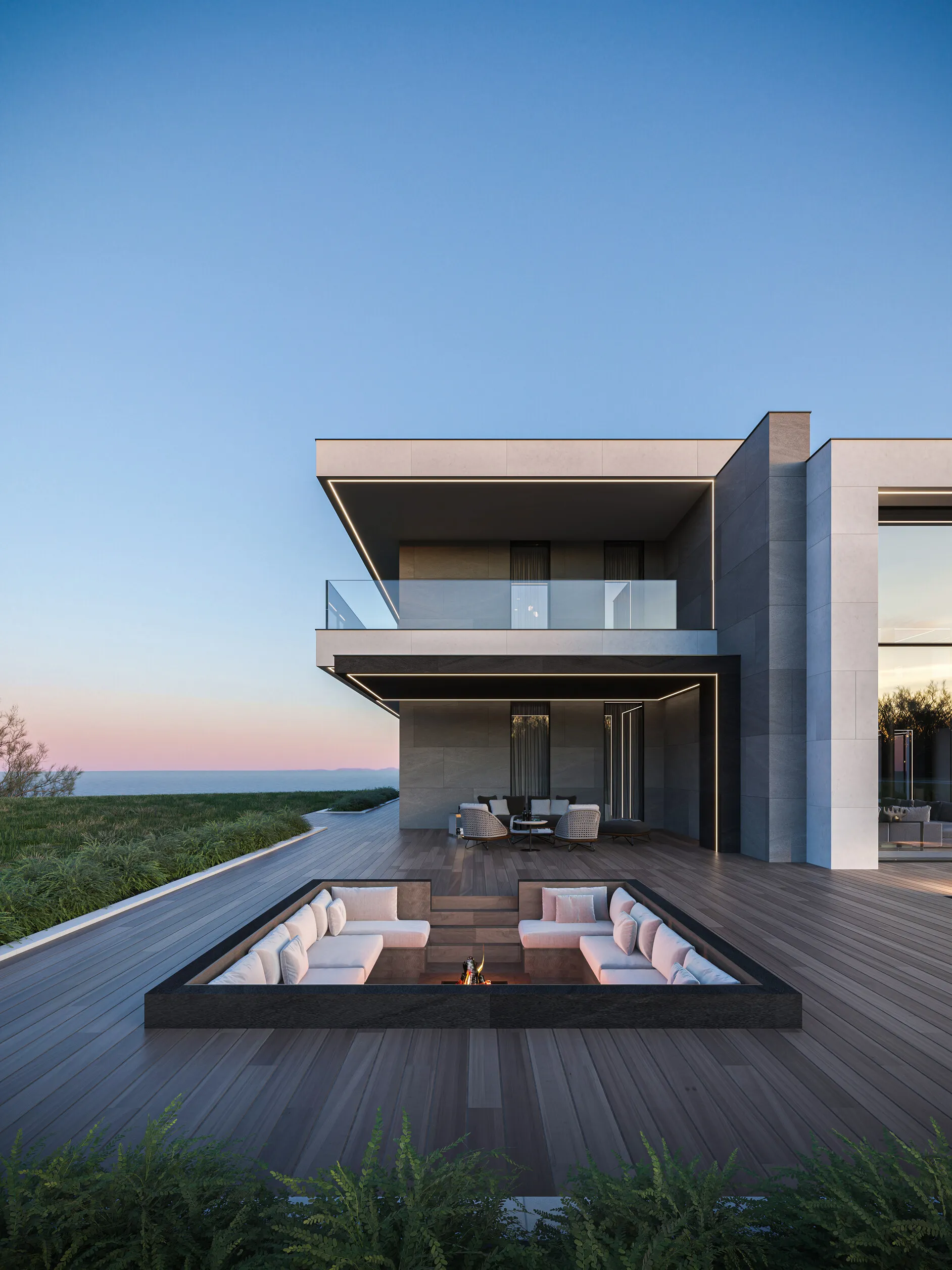 Клиент выразил пожелание максимально использовать уникальное расположение участка и создать пространство, которое будет неразрывно связано с морским пейзажем, при этом обеспечивая комфортное проживание большой семьи на протяжении всего года.