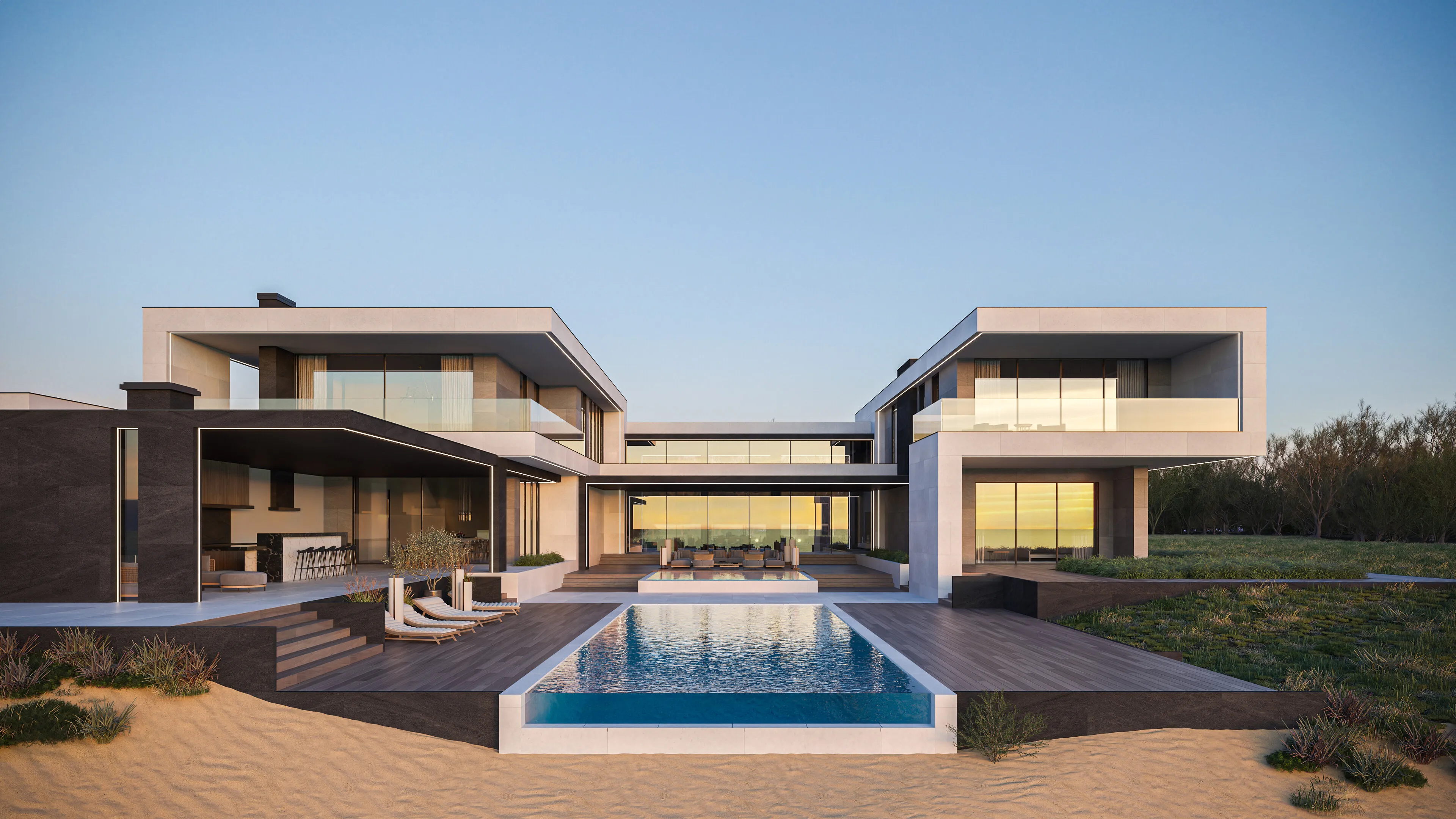 Клиент выразил пожелание максимально использовать уникальное расположение участка и создать пространство, которое будет неразрывно связано с морским пейзажем, при этом обеспечивая комфортное проживание большой семьи на протяжении всего года.